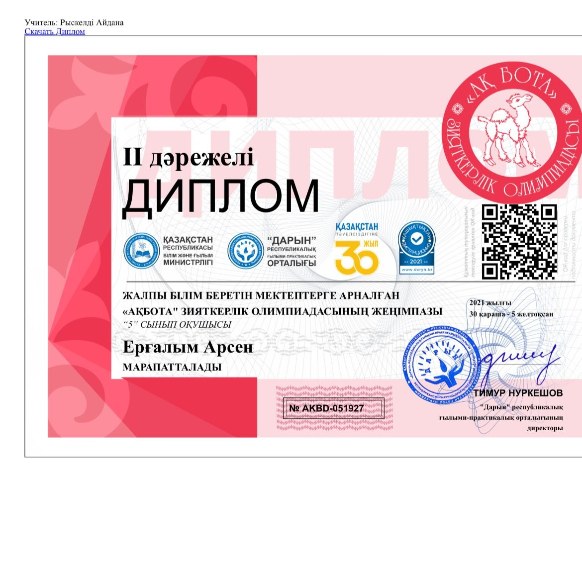 14 январь 2022 0 1 2 3 4 5 "Ақбота" Зияткерлік олимпиадасының жеңімпазы Ерғалым Арсен Осы беттің QR-коды:QR-код этой страницы: