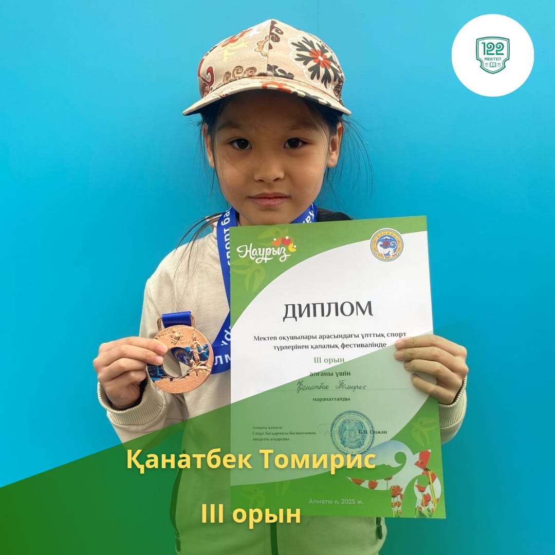✨️ Наурыз мерекесіне орай өткізілген тоғызқұмалақтан қалалық ашық турнирде 11 жас қыздар арасында 3"Ә" сынып оқушысы Қанатбек Томирис жүлделі 🥉орын иеленді. Жетекшісі Амираил Абылай Ерболұлы