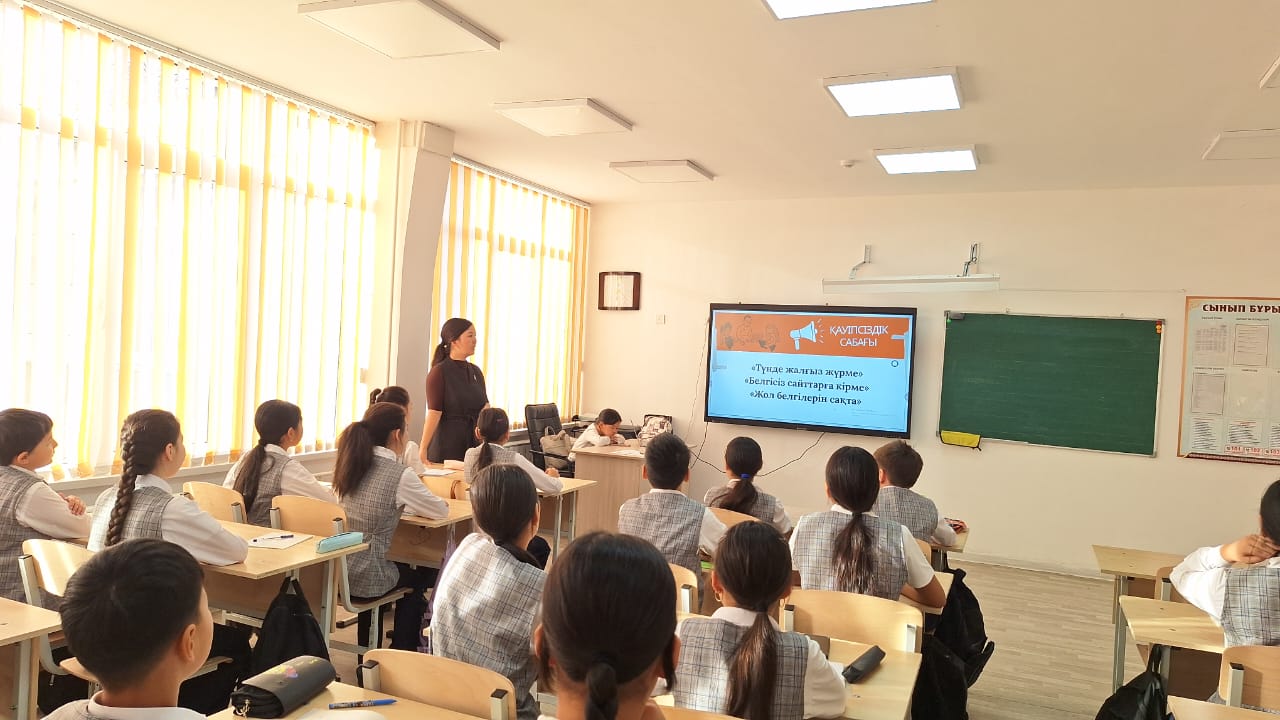 Оқушыларға күнделікті өмірде, мектепте және онлайн ортада қауіпсіздік ережелері түсіндірілді.