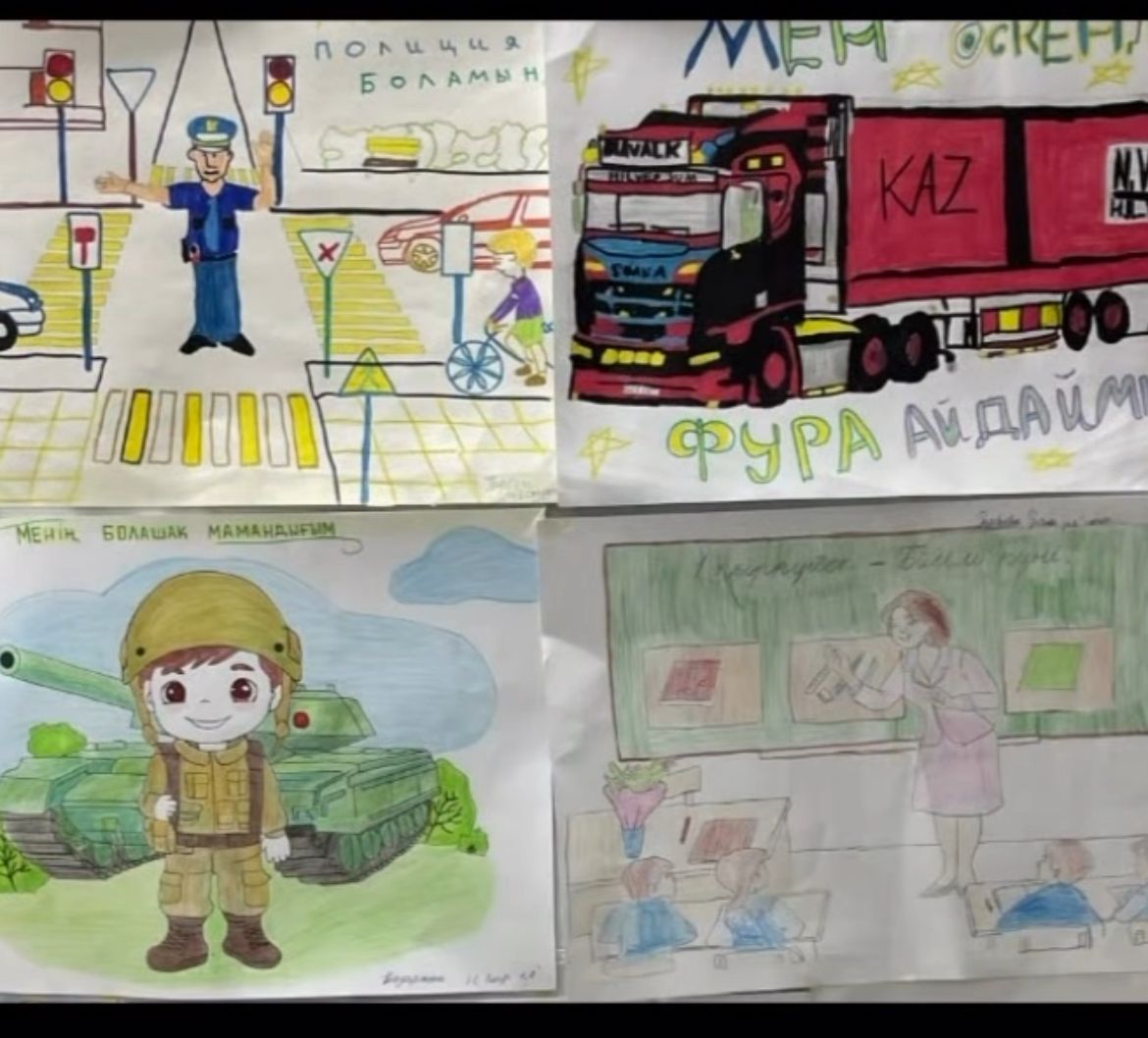 1-4 сынып оқушылары арасында “Мамандықтар әлемі – менің болашақ мамандығым” тақырыбында сурет байқауы өткізілді. Байқау барысында оқушылар мамандықтар туралы ойларын шығармашылықпен бейнеледі.