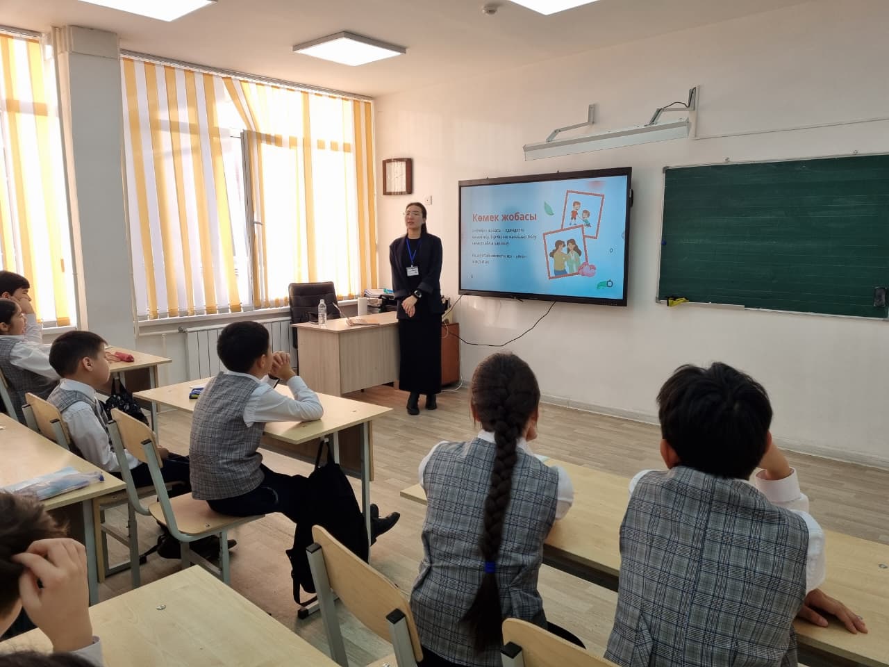«КӨМЕК» жобасы аясында (10 минут) оқушылар арасында өзара көмек көрсету, мейірімділік, жауапкершілік пен жанашырлық құндылықтарын қалыптастыруға бағытталған түсіндіру жұмыстары жүргізілді.