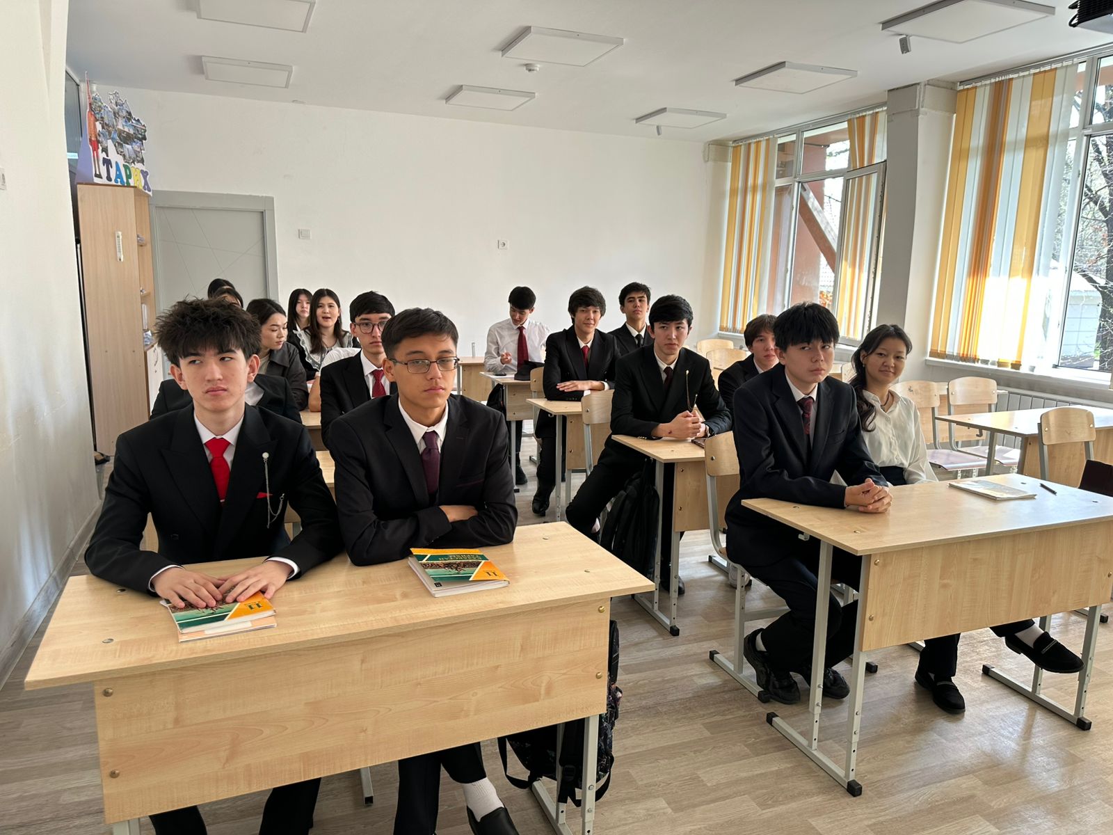 2026 жылдың 8 сәуір күні 11 сынып оқушыларына «Адал азамат» біртұтас тәрбие бағдарламасы аясында «Ата заң – мемлекет тірегі» тақырыбында сынып сағаты өткізілді.