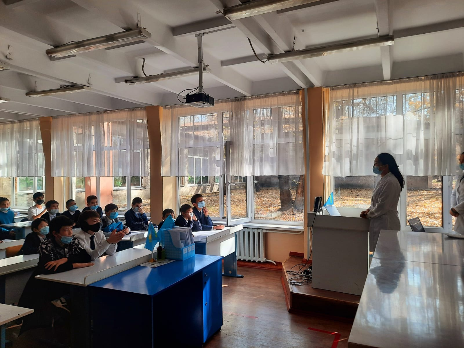 25 қазан күні 6 қалалық емханамен бірлесе атқаратын жоспар негізінде 7 сыныптың ұл балаларына " Ұл баланың психо-физиологиялық ер жету ерекшеліктері", " Электронды темекінің ағзаға зияны" тақырыптарында емхана психологы К.М Керимбаева мектеп медбикесі З.Мухамеджановамен бірлесе дәріс жүргізді. Маман оқушыларға кеңес бере отырып, жасөспірімдер сұрақтарына жауап берді. Кездесу соңында оқушылар сауалнамаға қатысты.