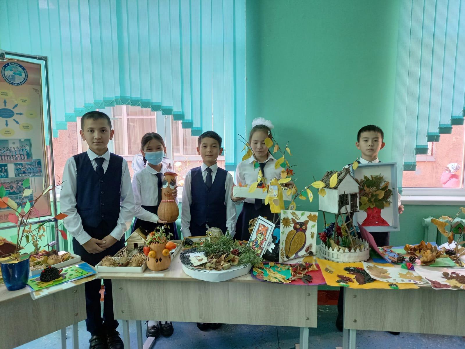Күзгі табиғаттың байлықтарынан ерекше әсер алып, сол арқылы балалардың эстетикалық сезімдерін ояту мақсатында мектебімізде "Алтын күз" атты қол өнер жұмыстарынан көрме ұйымдастырылды.