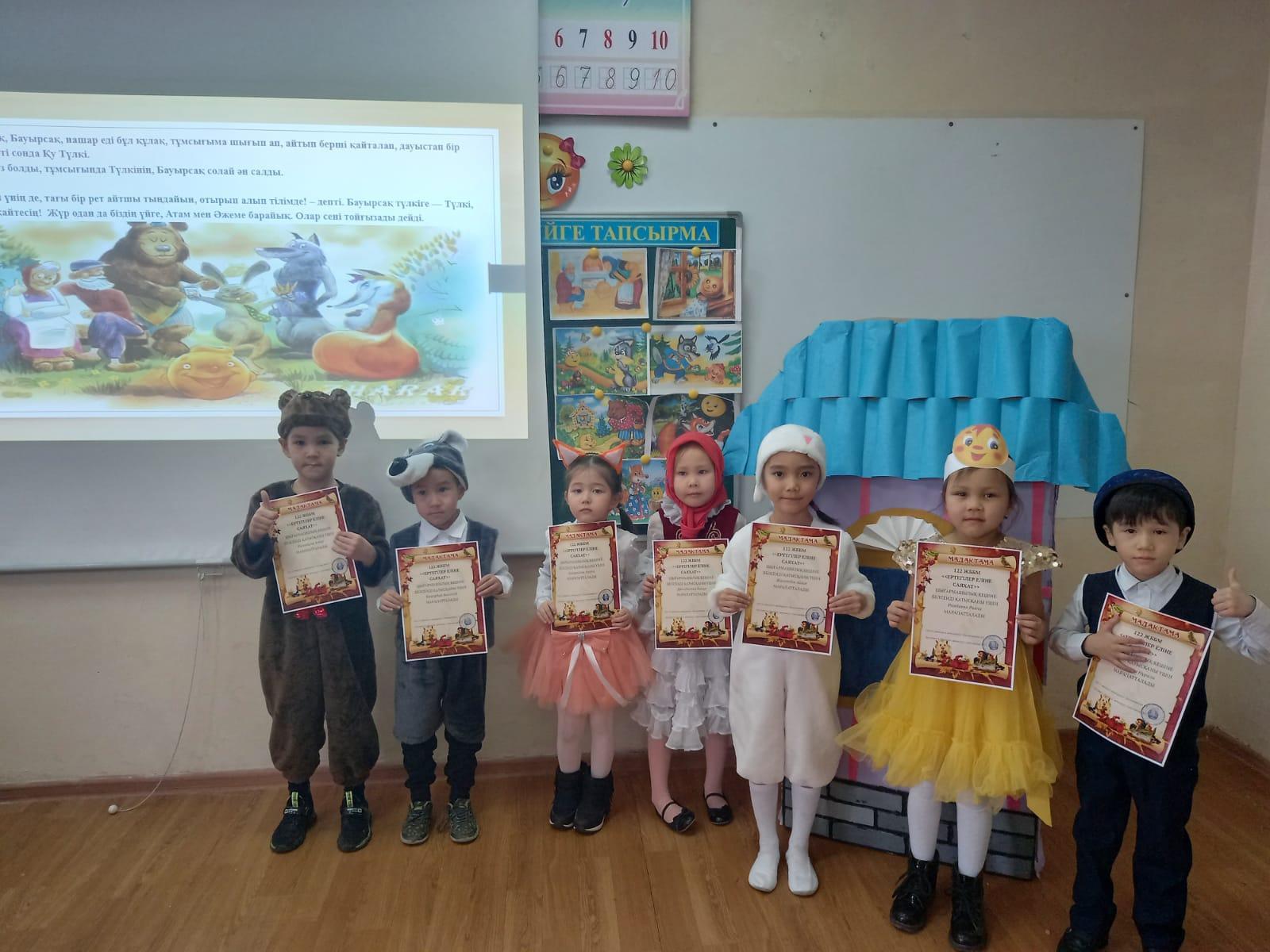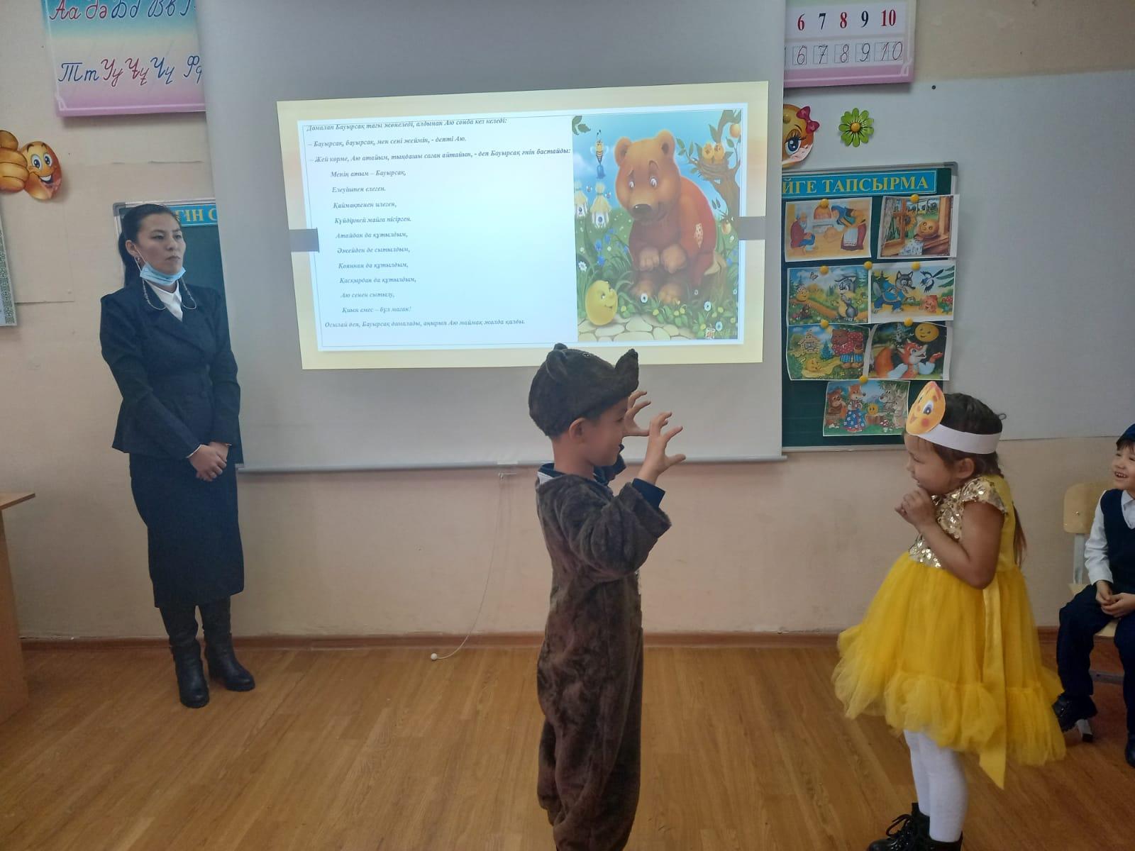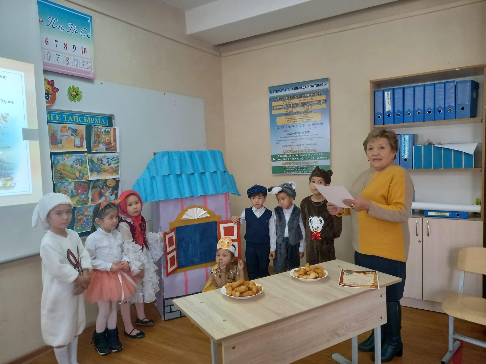 №122 жалпы білім беретін мектептің бастауыш сынып әдістемелік бірлестігінің "Бастауышым - бал бұлағым, лаулап жанған - шамшырағым" атты онкүндігі аясында даярлық топтары "Бауырсақ ертегісі" қойылымын көрсетті.