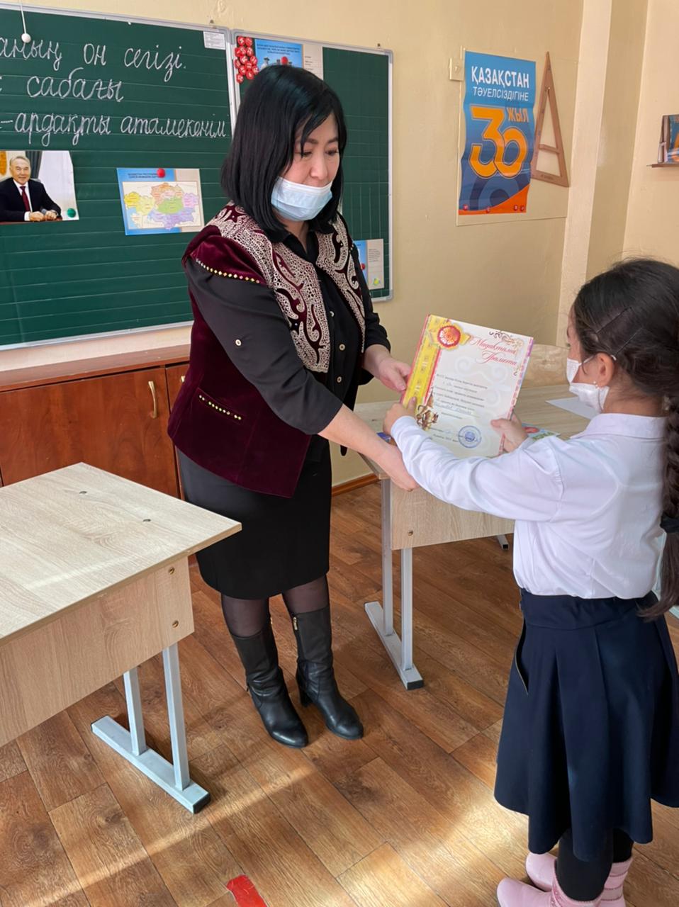 Үздік жұмыстар мадақтамамен марапатталды. Мақсаты:-Оқушыларды Тәуелсіз елін шексіз сүюге баулу, ынтымағы мен бірлігі жарасқан елдің ұланы екенін мақтанышпен сезіне білуге, тәуелсіздікті аңсаған ата-баба аманатына адал болуға, ұлтының салт-дәстүрін, өнері мен мәдениетін, тілін сүйе білуге баулу.
