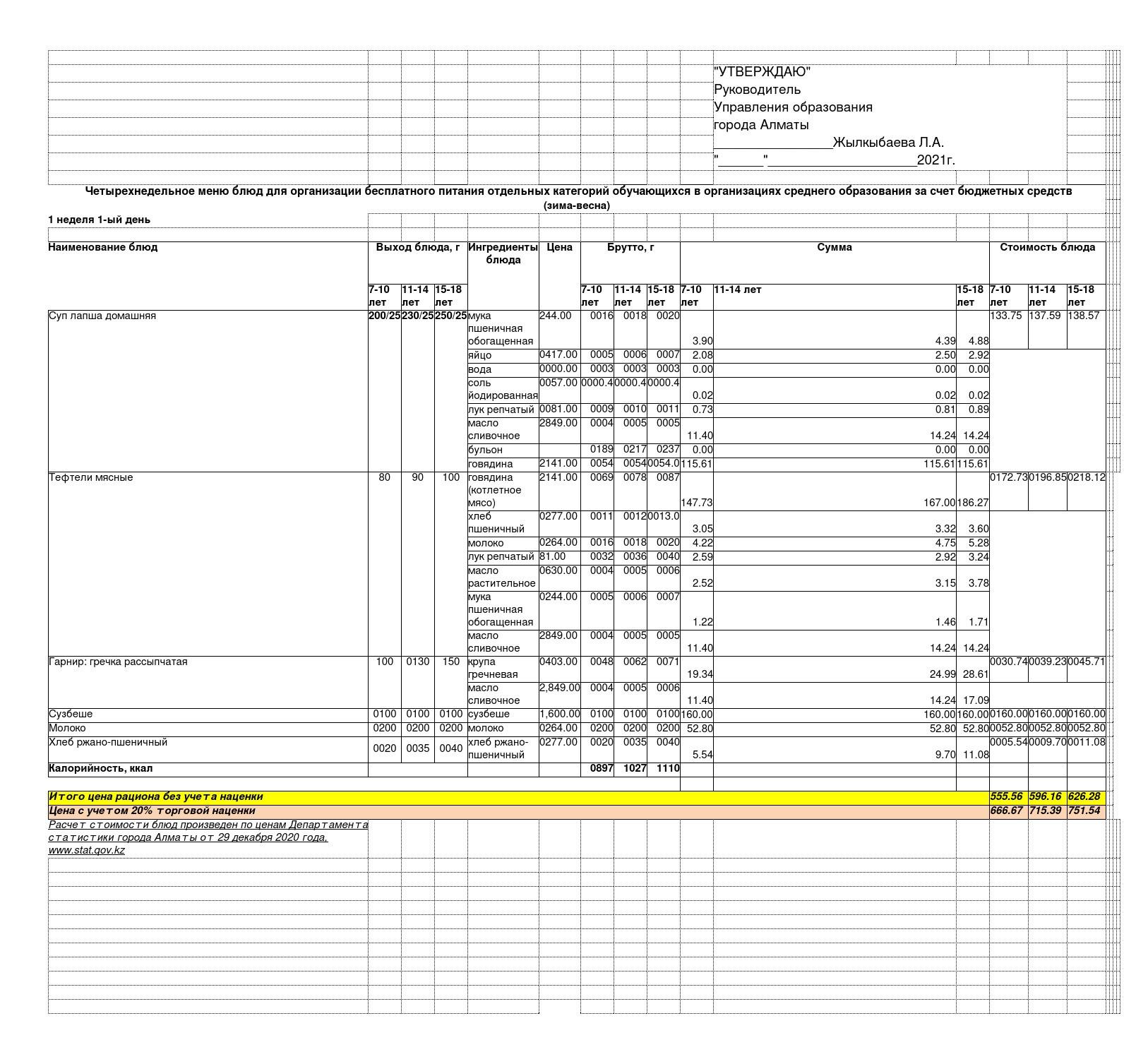 2021-2022 оқу жылы. Ас мәзірі, жаз-күз