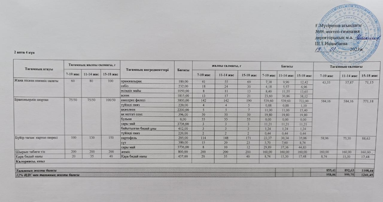19 январь 2023 0 1 2 3 4 5 Қаңтар айы 2-апта 4-күн ас мәзірі. 2022-2023 оқу жылы Осы беттің QR-коды:QR-код этой страницы: