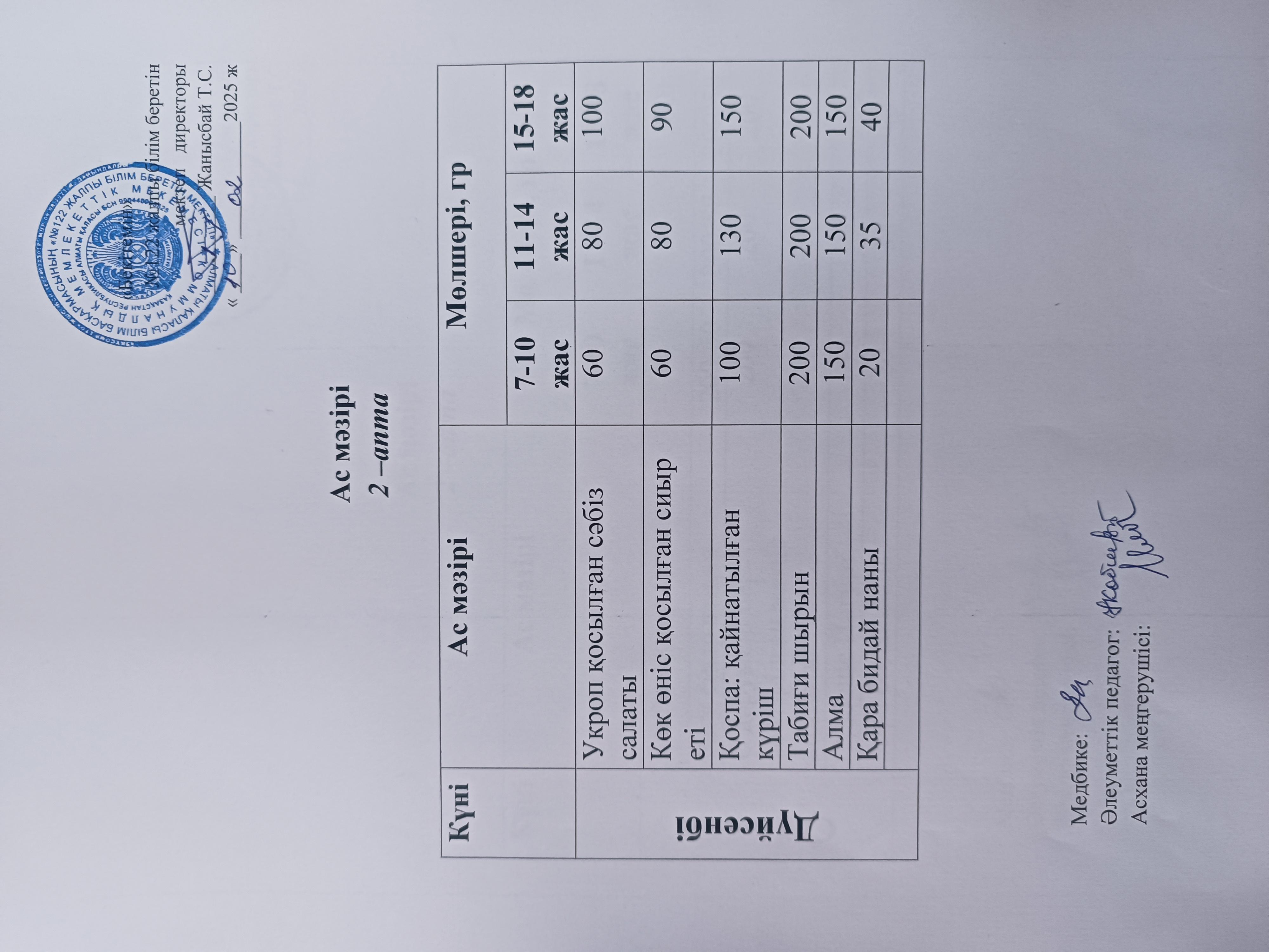Ақпан айы 2 апта 1-күн ас мәзірі.