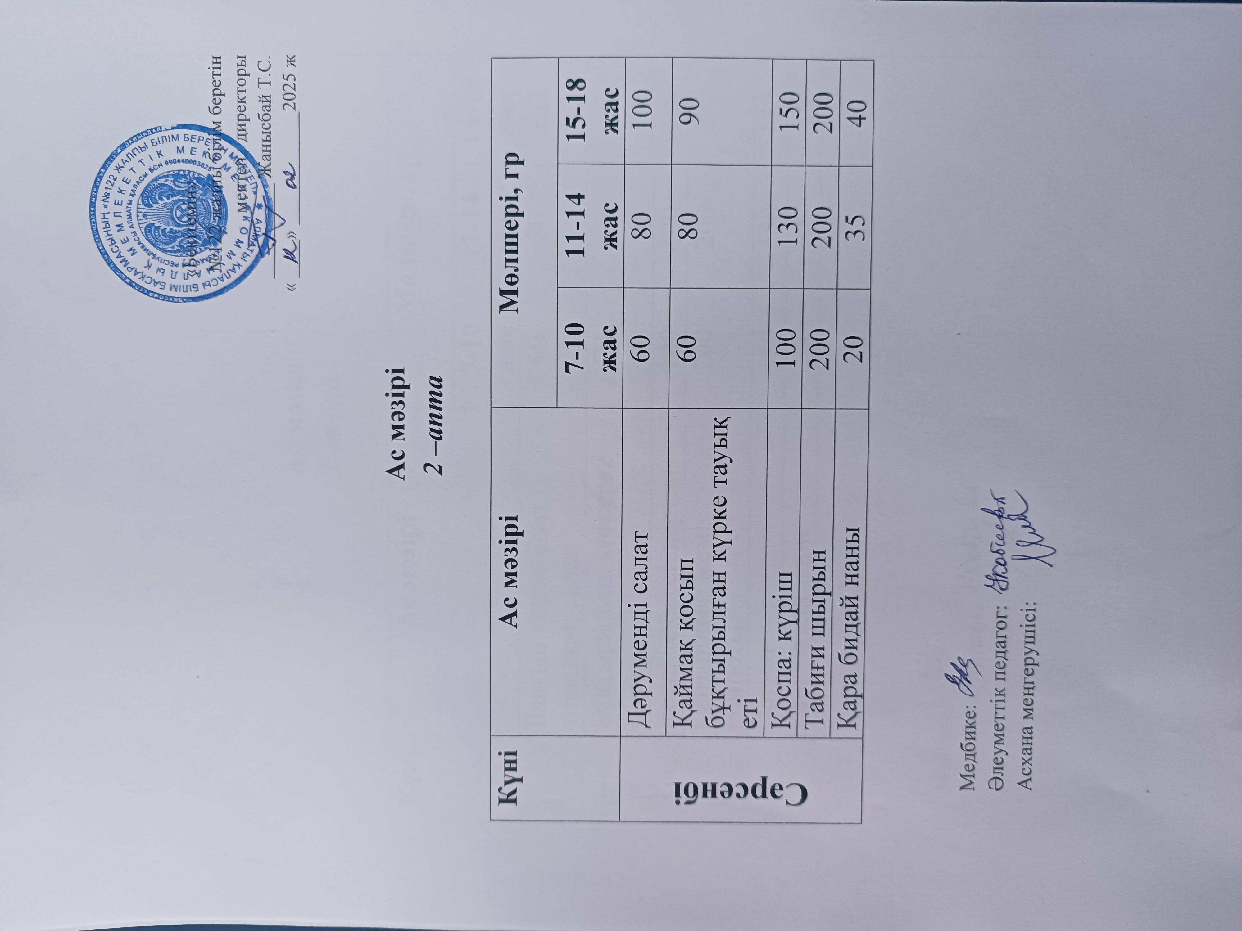 Ақпан айы 2 апта 1-күн ас мәзірі.