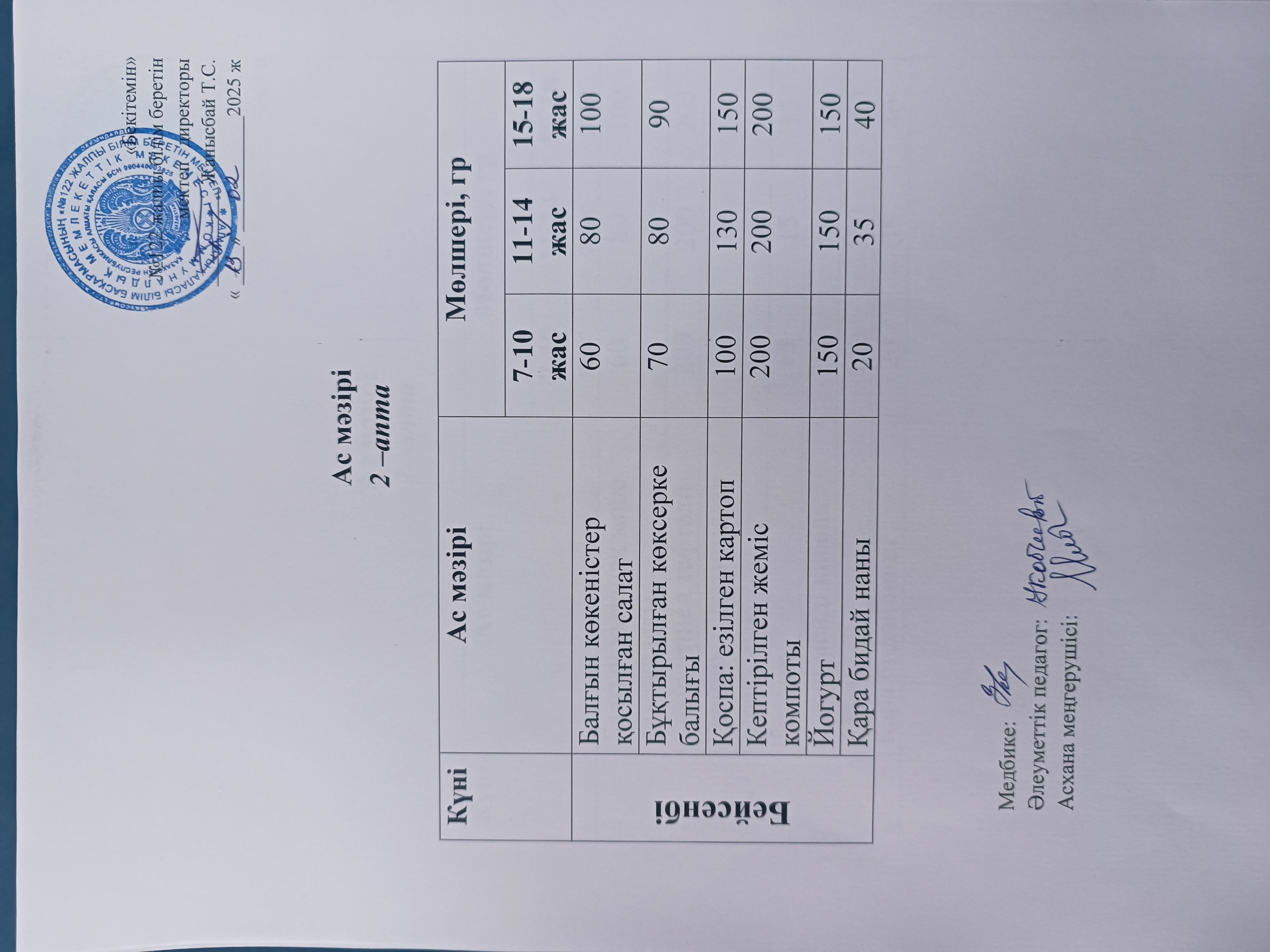 Ақпан айы 2 апта 4-күн ас мәзірі.