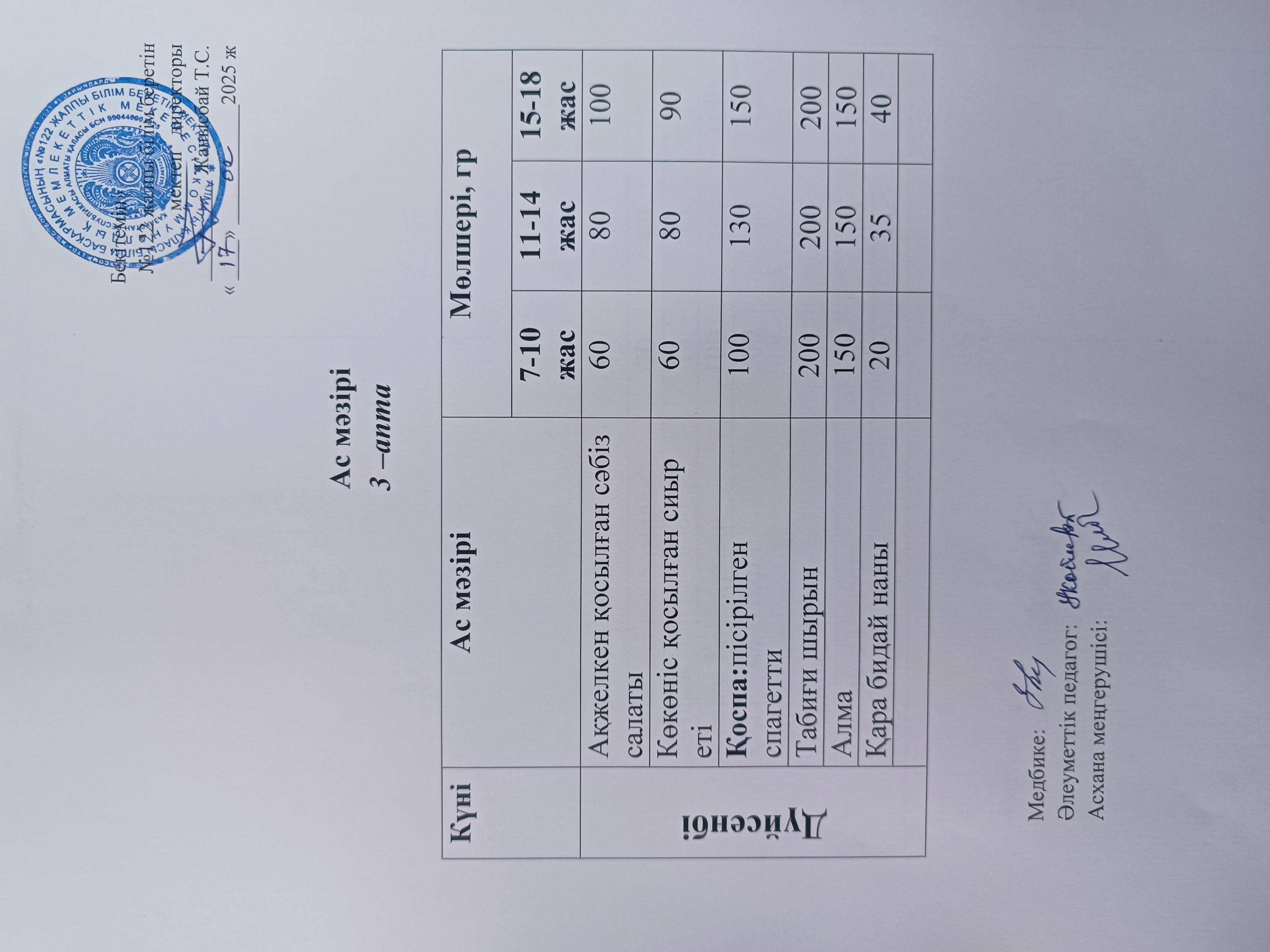 Ақпан айы 3 апта 3-күн ас мәзірі.