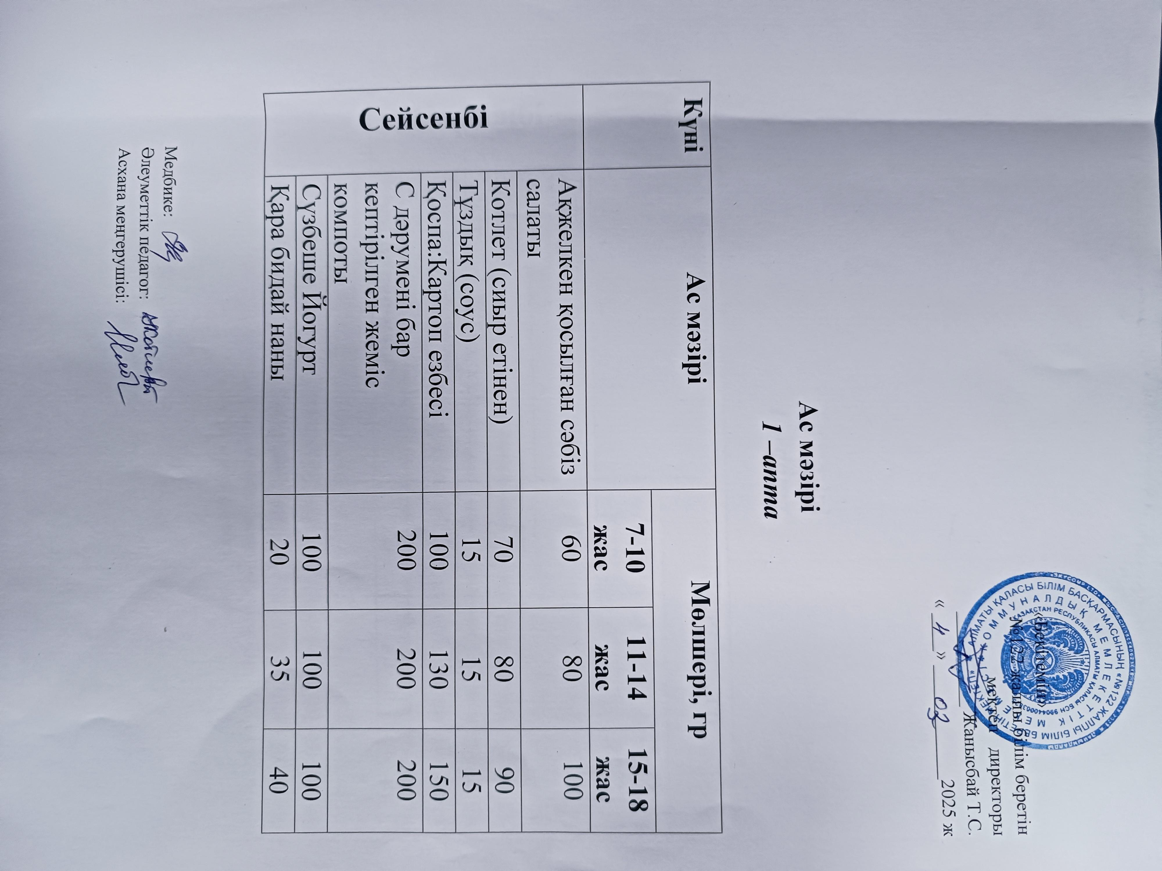 Наурыз айы 3 апта 1-күн ас мәзірі. 2023-2024 оқу жылы