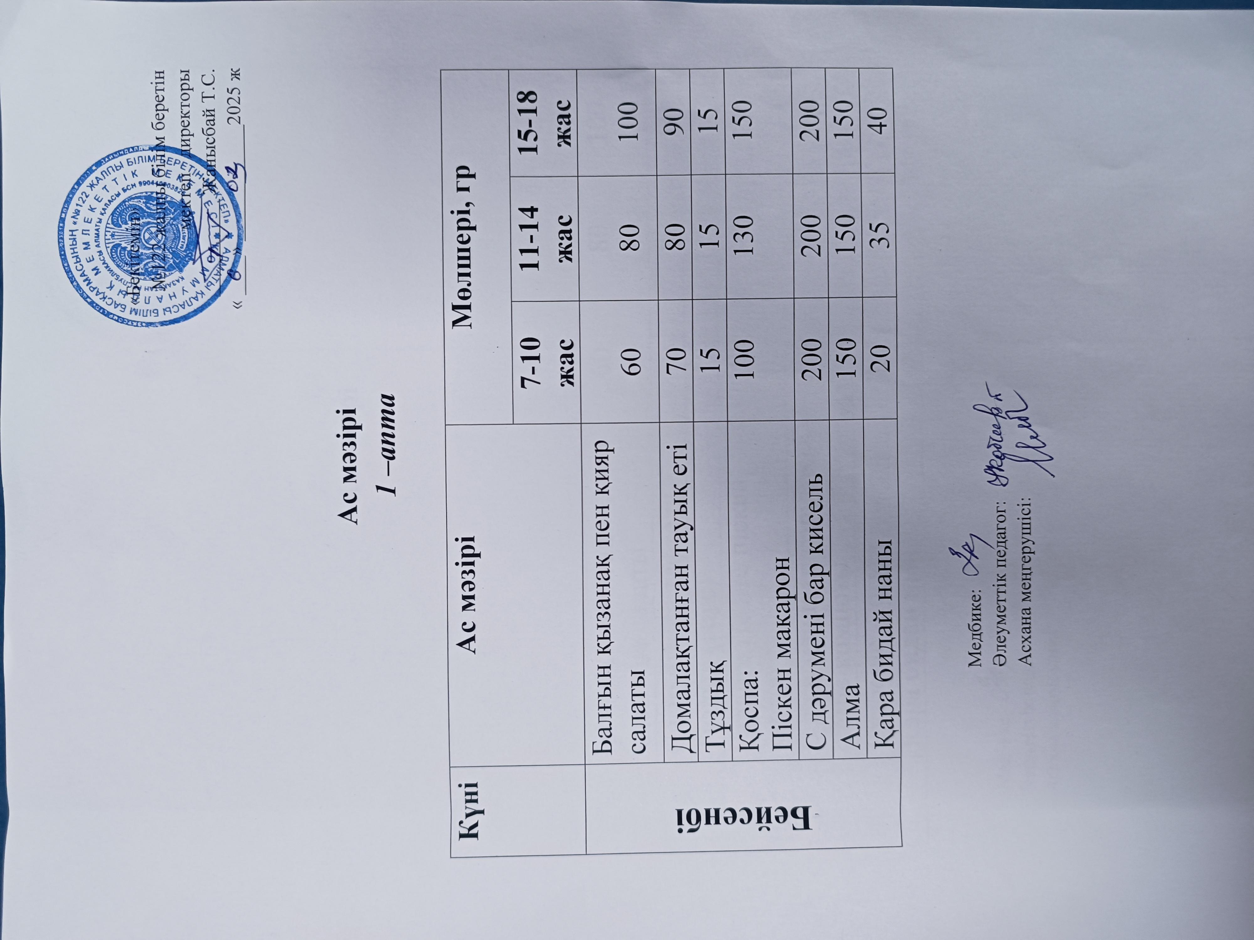 Наурыз айы 1 апта 2-күн ас мәзірі. 2023-2024 оқу жылы