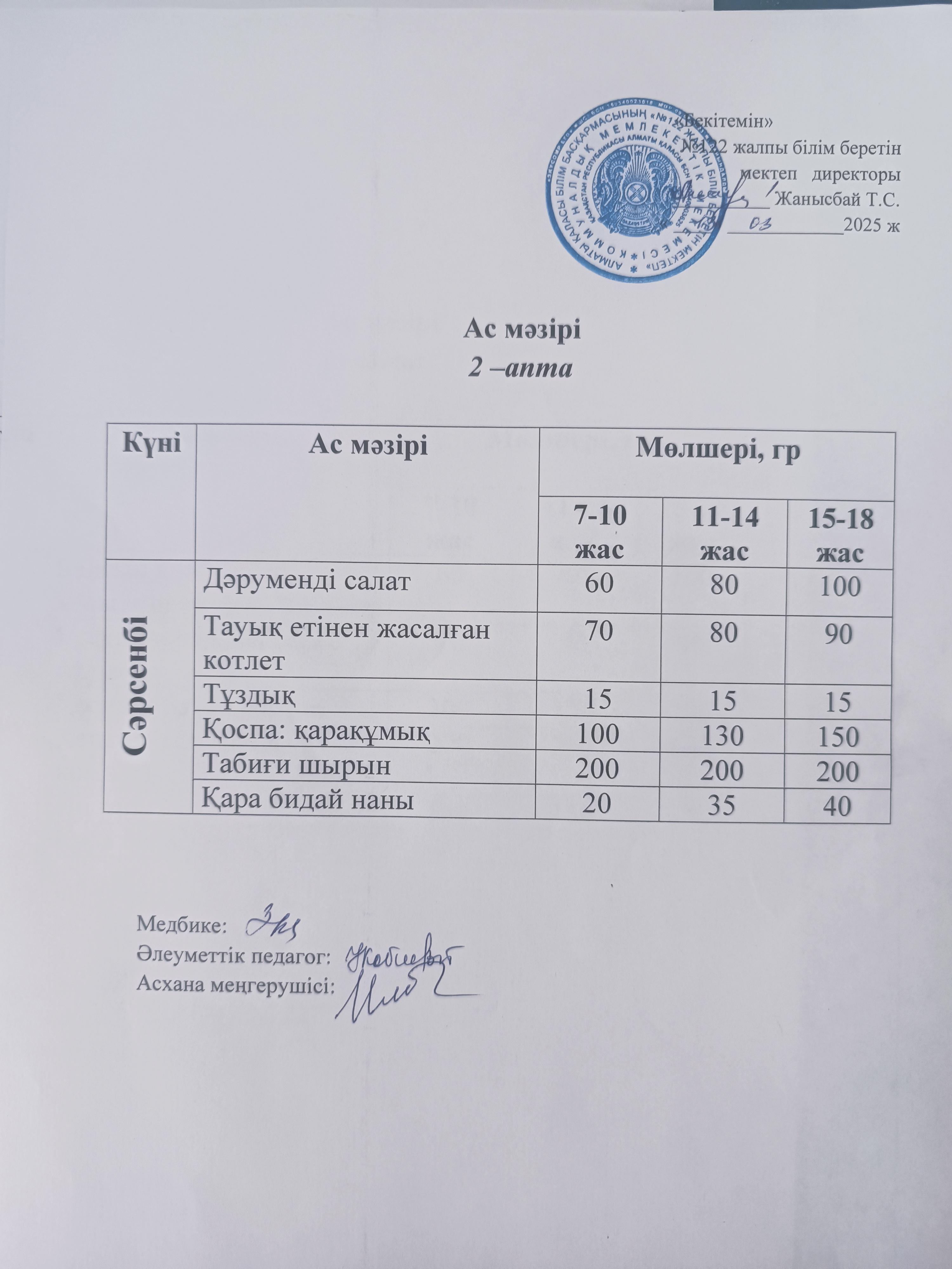 Наурыз айы 2 апта 2-күн ас мәзірі. 2023-2024 оқу жылы