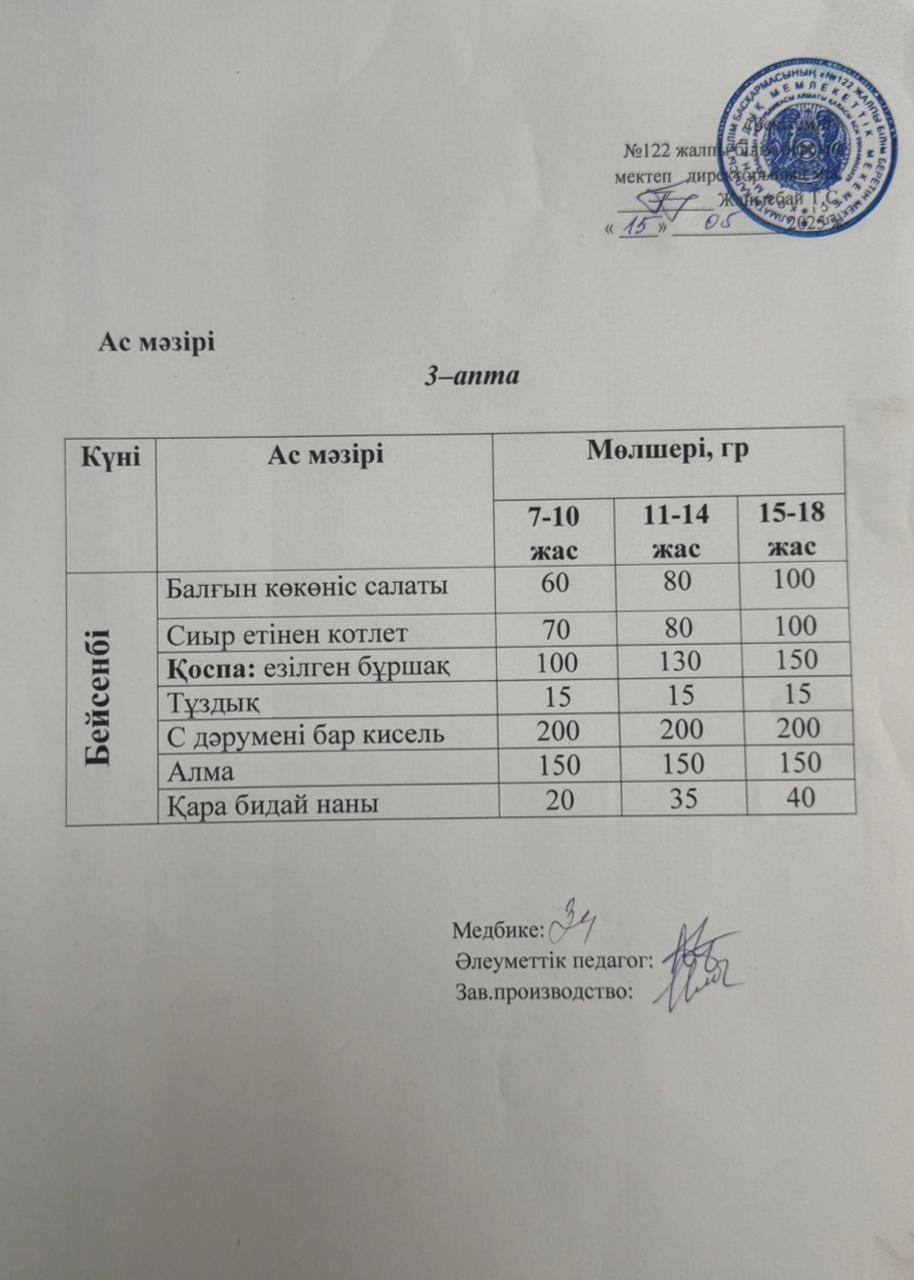Мамыр айы 2 апта 3-күн ас мәзірі. 2023-2024 оқу жылы