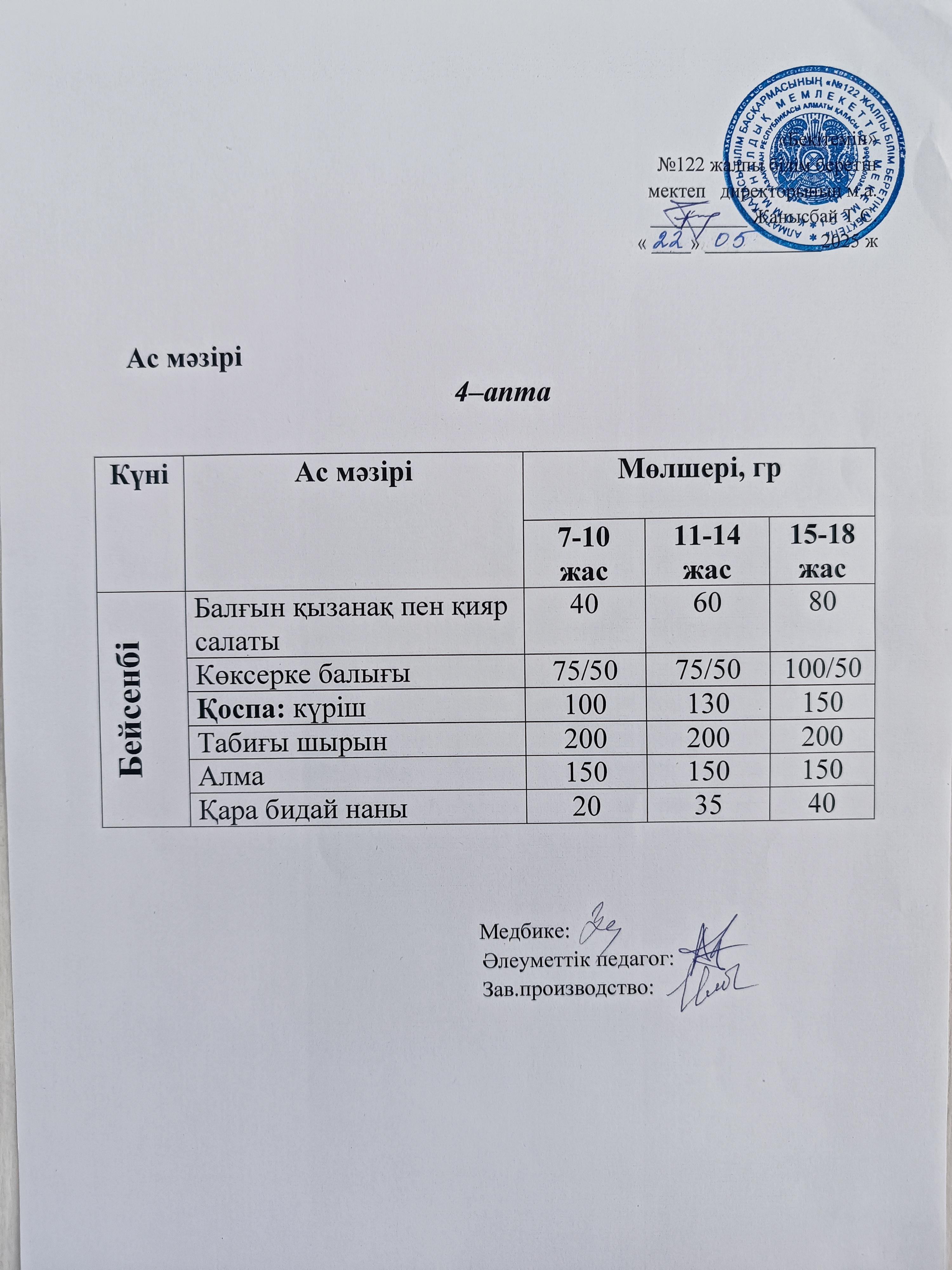 Мамыр айы 4 апта 4-күн ас мәзірі.