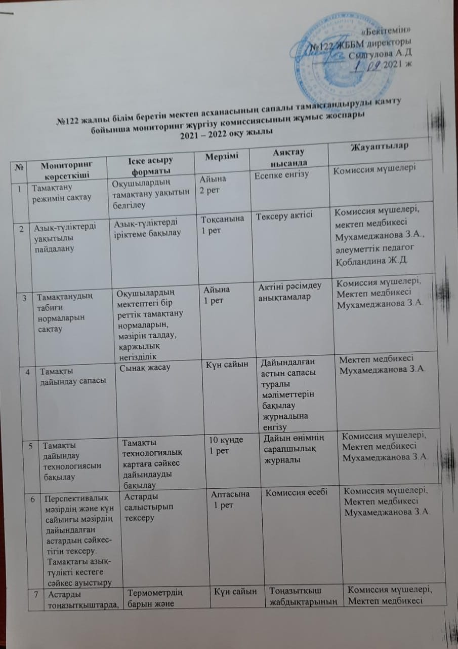 04 октябрь 2021 0 1 2 3 4 5 2021-2022 оқу жылы.Мектеп асханасының сапалы тамақтандыруды қамту бойынша мониторинг жүргізу комиссиясының жұмыс жоспары Осы беттің QR-коды:QR-код этой страницы:
