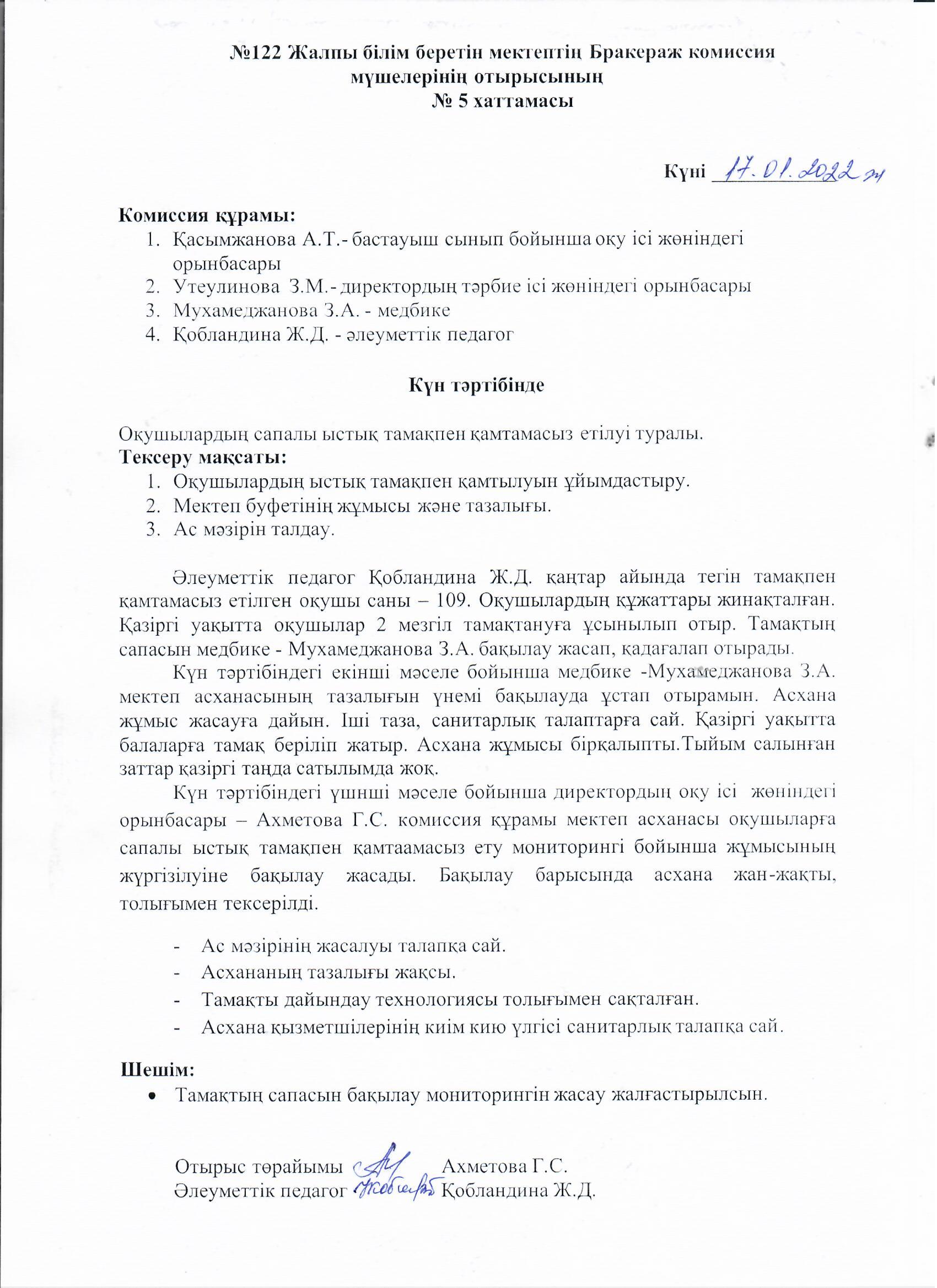 27 январь 2022 0 1 2 3 4 5 2021-2022 оқу жылы. Бракераж комиссия мүшелері отырысының №5 хаттамасы Осы беттің QR-коды:QR-код этой страницы: