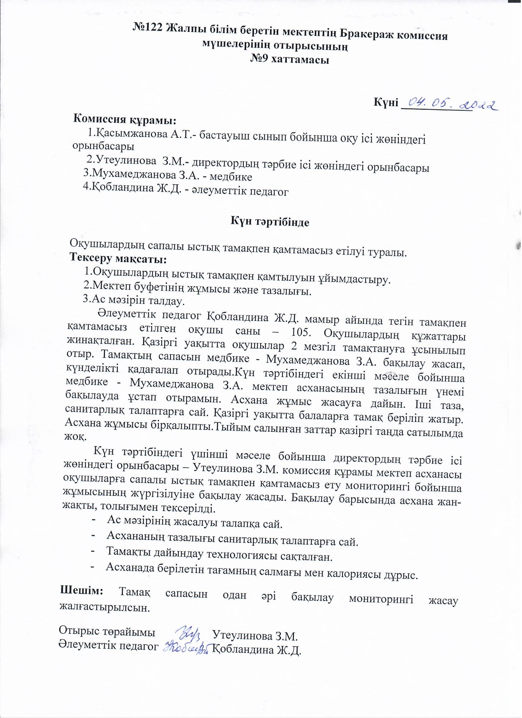 26 май 2022 0 1 2 3 4 5 Бракераж комиссия мүшелері отырысының №9 хаттамасы Осы беттің QR-коды:QR-код этой страницы:
