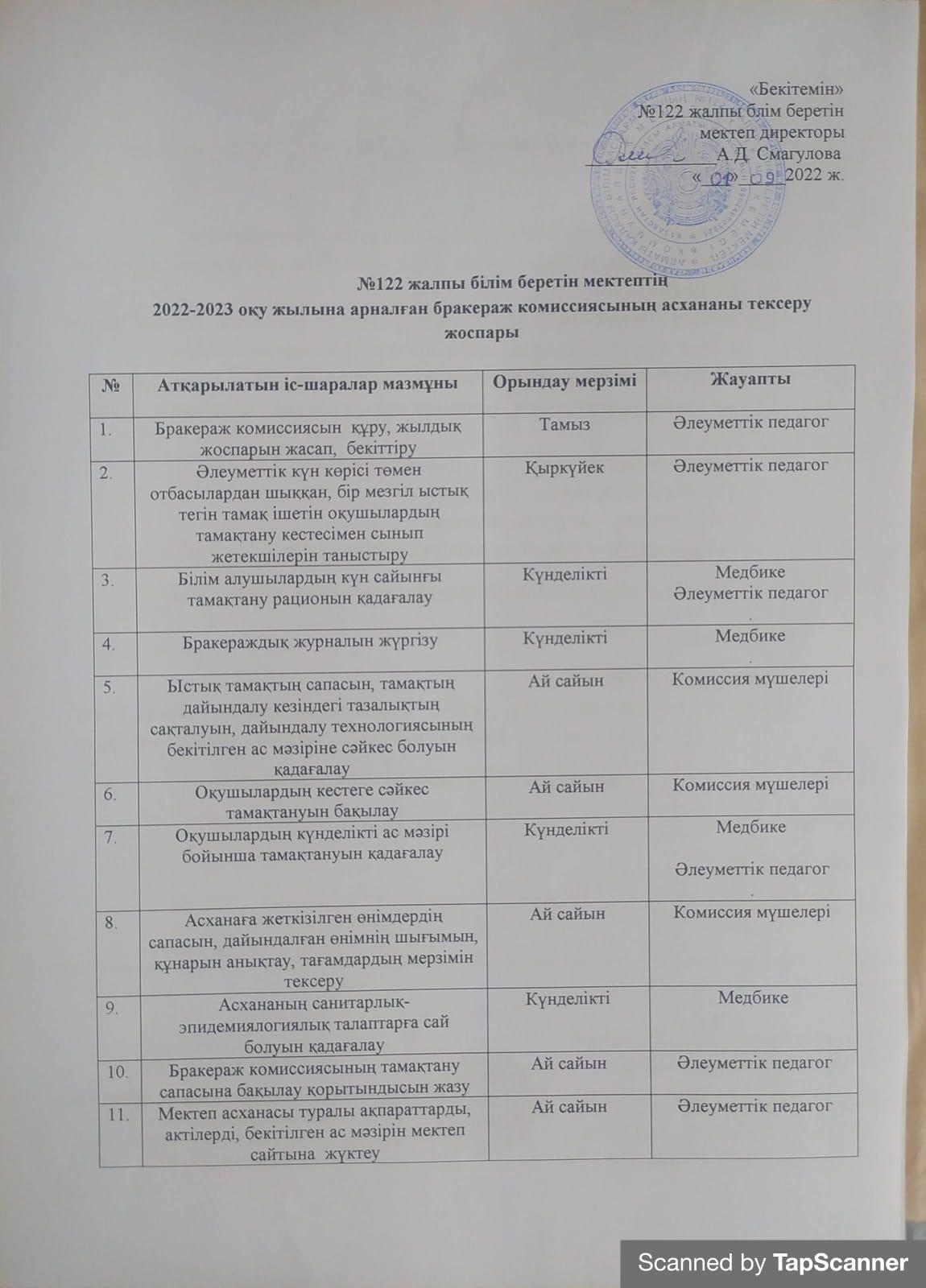 21 сентябрь 2022 0 1 2 3 4 5 2022-2023 оқу жылына арналған бракераж комиссиясының асхананы тексеру жоспары Осы беттің QR-коды:QR-код этой страницы:
