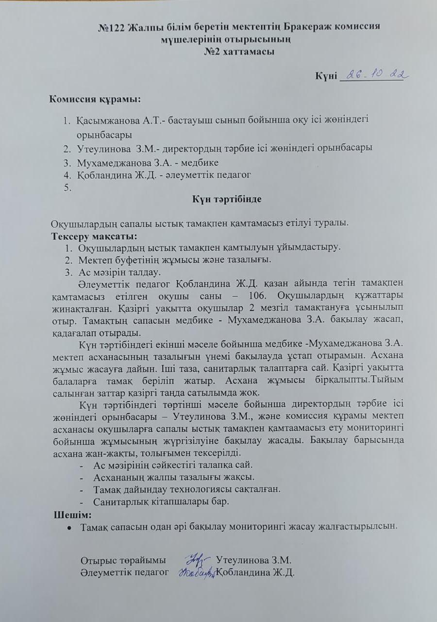 26 октябрь 2022 0 1 2 3 4 5 2022-2023 оқу жылы. Бракераж комиссия мүшелері отырысының №2 хаттамасы Осы беттің QR-коды:QR-код этой страницы: