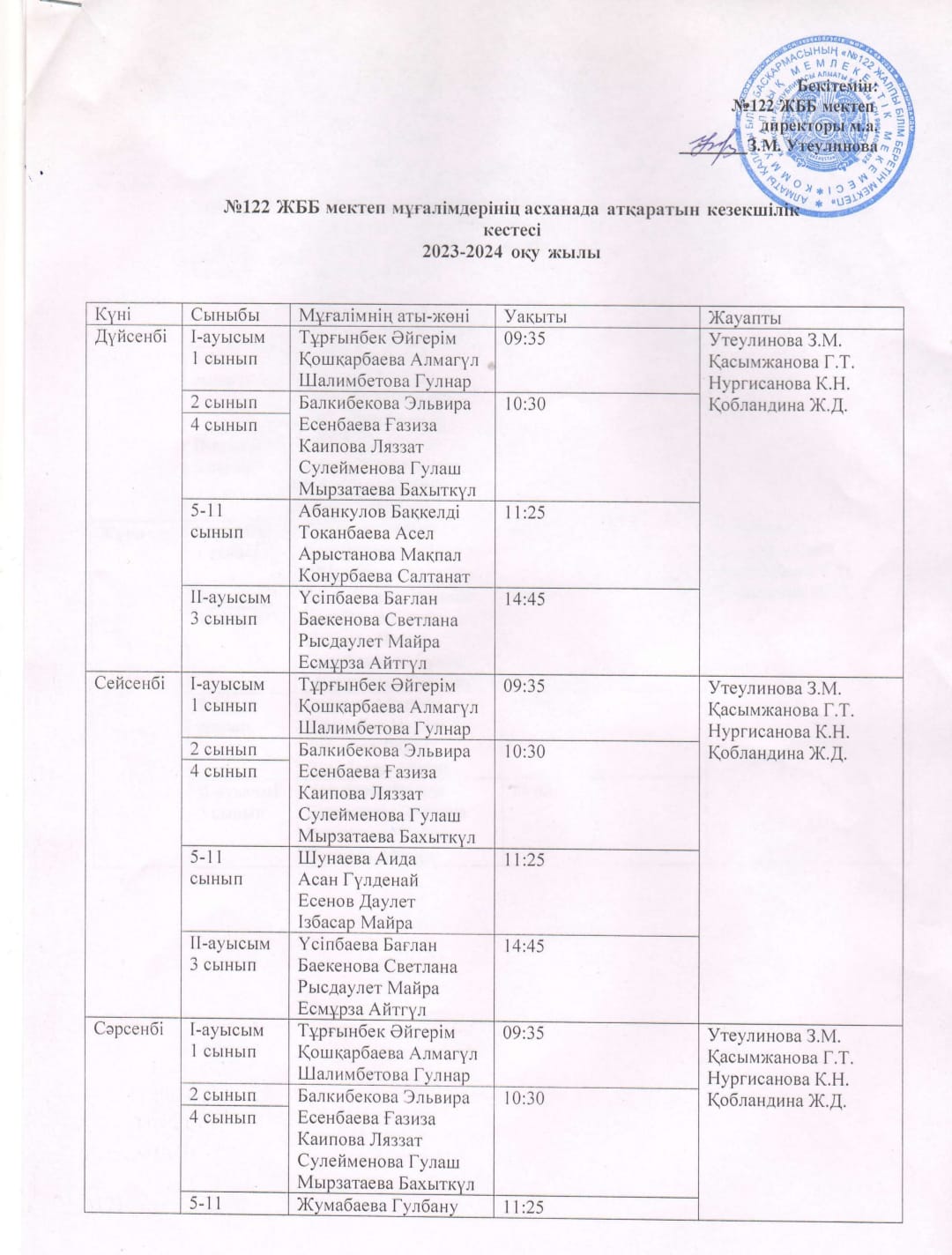 29 декабрь 2023 0 1 2 3 4 5 2023-2024 оқу жылы. Мектеп мұғалімдерінің асханада атқаратын кезекшілік кестесі Осы беттің QR-коды:QR-код этой страницы: