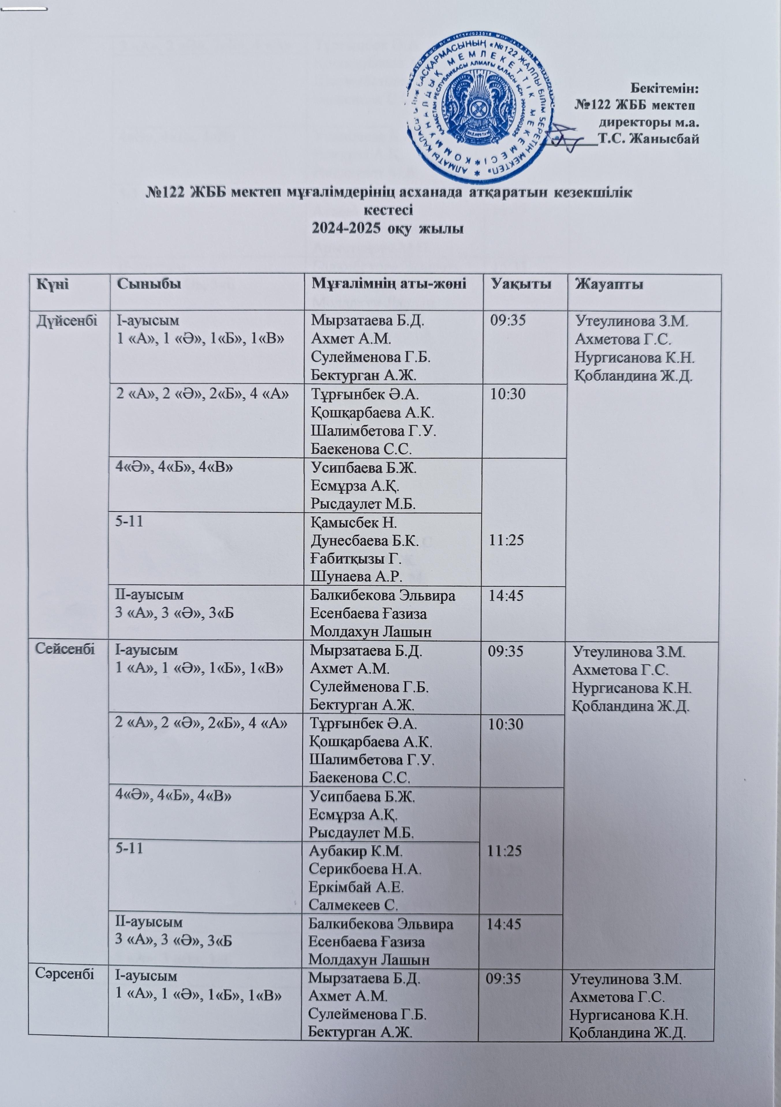 11 сентябрь 2024 0 1 2 3 4 5 2024-2025 оқу жылы. Мектеп мұғалімдерінің асханада атқаратын кезекшілік кестесі Осы беттің QR-коды:QR-код этой страницы: